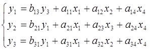 Проверим систему на идентифицируемость. Для этого проверим каждое уравнение системы на выполнение необходимого и достаточного условия идентификации. 1) В 1-м уравнении 3 эндогенные переменные y1, y2, y3 (Н=3). В нем отсутствуют экзогенные переменные х3, х4 (D=2). Необходимое условие идентификации