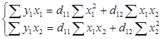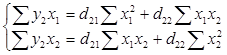 Для нахождения коэффициентов d2k второго приведенного уравнения используем следующую систему нормальных уравнений