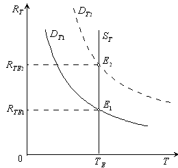Рисунок № 3. Изменение равновесной цены (рентной ставки) при изменении спроса на землю. Диаграмма № 1
