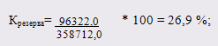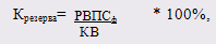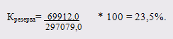 где : Крезерва - коэффициент резерва, %; РВПСф - сумма фактически созданного резерва на возможные потери по ссудам, млн. руб.; КВ - кредитные вложения, млн.руб. Для ОАО "Банка24.ру" по состоянию на 01.01.09г.