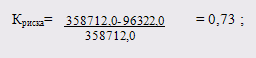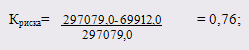 Значение данного коэффициента по банкам России считается оптимальным на уровне 15%. Тогда как из расчетов видно, что для ОАО "Банк24.ру" это значение гораздо выше оптимального, что говорит о низкой степени защищенности от возможного невозврата ссуд. Качество кредитного портфеля с точки зрения кредитного риска позволяет оценить коэффициент риска (Криска ), который рассчитаем по следующей формуле (6):