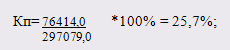 где : Криска - коэффициент риска, %; КВ - кредитные вложения, млн.руб.; РВПСф - сумма фактически созданного резерва на возможные потери по ссудам, млн.руб. Для ОАО "Банк24.ру" по состоянию на 01.01.09г.