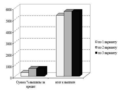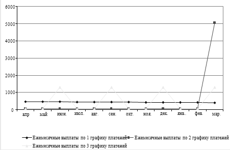 Рис. 10. Графическое представление погашения кредита по трем вариантам