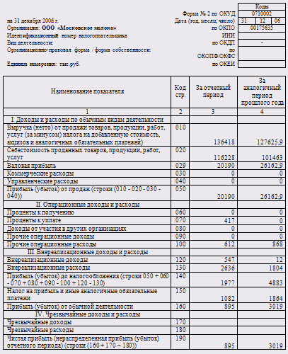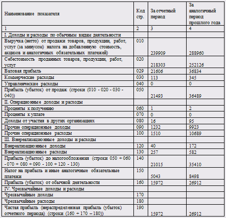 ОТЧЕТ О ПРИБЫЛЯХ И УБЫТКАХ