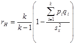где В. Результаты вычисления в этом методе интерпретируются также как и в предыдущем. 3-й метод. А. Коэффициент надежности вычисляется по формуле Кюдера-Ричардсона [20]: