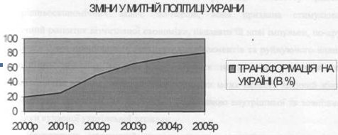 Рис. 2.4. Трансформація митної політики Перспективи такої трансформації значною мірою стимулюються через зволікання з прийняттям нового Митного кодексу України, проект якого розроблено до вимог Всесвітньої митної організації. Але суперечності між застарілою законодавчою базою та підзаконними актами, якими керуються на практиці митні органи України, не дають змоги їм виконувати свої фіскальні функції повною мірою, що негативно впливає на процеси поповнення державного бюджету та зовнішньоекономічну діяльність в цілому. 2.2 Митно-тарифна політика України та її вплив на імпорт та експорт товару Митну політику України у загальному вигляді можливо визначити як систему політично правових, економічних, організаційних та інших заходів, заправлених на реалізацію і захист зовнішньоекономічних інтересів держави з метою динамічного здійснення політичних та соціально-економічних перетворень за умов формування ринкових відносин. Митна політика являється однією із основних частин зовнішньої політики держави. Але в умовах формування та розвитку ринкових відносин митна політика придбала значення інструменту і засобу рішення внутрішньо-економічних задач: по-перше, вона призвана стимулювати всебічний розвиток вітчизняної економіки, надавати їй нові імпульси, по-друге зберігати її від проникнення деструктивних елементів та руйнуючого впливу. Недооцінка значення усього набору митних інструментів – правових, організаційних митних, тарифно-контрольних може нанести великий збиток економічним інтересам, які являються серцевиною внутрішньої та зовнішньої політики сучасної української держави. Враховуючи історичний досвід розвитку митної системи в цілому, порівнюючи його з формуванням сучасної митної системи в Україні, не можна недооцінювати роль інституту митно-тарифного регулювання. На даний момент механізм існуючого митного регулювання на Україні не відповідає вимогам світової практики його застосування. Як показує світова практика, основними методами митно-тарифного регулювання являються: 1. Захист вітчизняного виробника у тих галузях промисловості, які чітко наладжені та функціонують в країні, а не хаотичне регулювання ввозу імпортних товарів, виробництво яких на Україні відсутнє або по причині географічного розміщення країни не можливе. 2. Поповнення державного бюджету за рахунок виконання суб’єктами ЗЕД експортно-імпортних операцій, причому не за рахунок збільшення розміру ставок мита а за рахунок збільшення обсягу угод зовнішньоекономічних операцій. 3. Можливість розрахунку економічності та ефективності запланованої зовнішньо – економічної операції. Для цього, незалежно від країни походження товару необхідно встановити максимальну специфічну ставку мита на кожний код товарної позиції для товарів, на які встановлена адвалерна ставка мита. Таким чином якщо при ввезенні визначеного товару сума мита по адвалерній ставці, буде менш ніж сума при стягненні по максимальній ставці, то в цьому випадку повинен стягуватися еквівалент суми по максимальній специфічній ставці. Вживання такого механізму дасть можливість суб'єктам ЗЕД чітко і вірно розрахувати цілеспрямованість та ефективність плануємої зовнішньоекономічної операції, та буде сприяти видаленню такого способу уникнення оплати мита, як заниження 