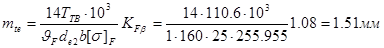 YF 2 =3.62 - коэффициент формы зуба колеса Yβ =1– коэффициент учитывающий наклон зуба KFα =1 – коэффициент, учитывающий распределение нагрузки между зубьями KFβ =1.1 – коэффициент неравномерности нагрузки по длине зуба KFv =1.05 – коэффициент динамической нагрузки б) шестерня YF 1 =3.47 - коэффициент формы зуба колеса