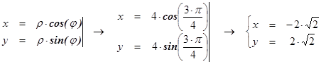 Пример 2 (нахожденние расстояния между двумя точками) Найти расстояние между точками Решение: Координаты точек заданы в полярных координатах, а выражение для нахождения получено для точек, заданных в ПДСК, а потому, прежде всего, необходимо выразить координаты точек в ПДСК. Из таблицы взаимосвязи полярных и декартовых координат получаем, что для точки
