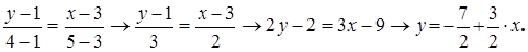 Пример 8 (получение уравнения прямой) Получить уравнение прямой, проходящей через точки M1 (3; 1) и M2 (5; 4). Представить эскиз. Решение : Итак, имея ввиду последний результат, определяемся со значениями входящих в него величин: x1 = 3; y1 = 1; x2 = 5; y2 = 4, тогда