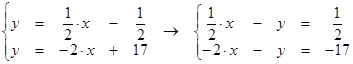 и, используя выражение для нахождения уравнения прямой, проходящей через данную точку с данным угловым коэффициентом y – 9 = -2∙(x– 4) → y = - 2∙x + 17. Т.о., искомая прямая определяется уравнением y = - 2∙x + 17. Шаг 3 Проекцию точки Р на прямую АВ находим как результата пересечения найденной прямой и прямой АВ