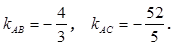 Откуда, разрешая оба уравнения относительно y, получаем, что - прямая АВ: - прямая АС: Т.о.
