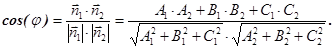 где a, b и с - величины отрезков, отсекаемых плоскостью на осях Ox, Oy и Oz соответственно. Пусть две плоскости заданы своими общими уравнениями A1 ∙x + B1 ∙y + C1 ∙z + D1 = 0 и A2 ∙x + B2 ∙y + C2 ∙z + D2 = 0. Т.е., векторы-нормали имеют координаты - для плоскости - для плоскости И пусть плоскости не совпадают и не параллельны (см. Рис.32)