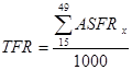 где nBx - число рождений у женщин возраста х+n лет; nFx - среднегодовая численность женщин возраста х+n лет. Суммарный коэффициент рождаемости (TFR) Этот коэффициент рассчитывается просто как сумма повозрастных коэффициентов для возрастов от 15 до 49 лет: демография рождаемость смертность население