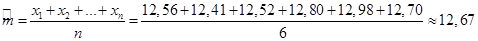 Доверительный интервал для m : (12,45; 12,89) с вероятностью покрытия 0,95. Концевые точки доверительного интервала для