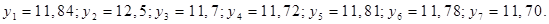 Она зависит от чисел (1-α)/2=0,1 – погрешность слева; (1+α)/2=0,6 – погрешность справа, k =n -1=5 – число степеней свободы. Значит Интервал: (0,113; 0,646) – доверительный интервал для дисперсии с вероятностью покрытия 0,8. Задание 2УсловиеВ продолжение задания 1. Существенно ли изменились условия проведения опыта, если очередная серия наблюдений привела к следующим данным? Поставить этот вопрос на языке теории вероятностей и получить ответ. 11,84; 12,50; 11,70; 11,72; 11,81; 11,78; 11,70. РешениеНовые суточные доходы трамвайного парка: Перед нами стоит вопрос: «Существенно ли изменились условия проведения опыта, если очередная серия наблюдений привела к следующим данным, т.е. изменились ли математическое ожидание и дисперсия в новой серии наблюдений?» Предполагается, что над случайной величиной X