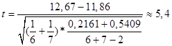 Пусть β=0,05. Нужно использовать таблицу для погрешностей, но т.к. ее нет, найдем φ=1- β=0,95. По таблицам Стьюдента Сравним t