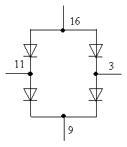 В качестве выпрямительных элементов используем микросхемы К142НД1 - набор диодов. Нумерация выводов приведена на рисунке 13.