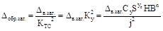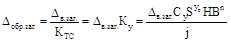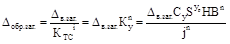 де Lp – виліт різця, мм; F – площа поперечного перерізу різця мм2 ; σв – тимчасовий опір матеріалу заготовки, МПа; t – глибина різання, мм; So – подача, мм/об; ν – швидкість різання, м/хв. Видовження різця, що відповідає будь-якому моменту часу від початку роботи, визначають за формулою [2]: