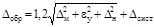 де Кі – коефіцієнт відносного розсіювання, який характеризує відмінність між дійсним розсіюванням складової і-ої похибки і розсіювання за нормальним законом. Для закону Гаусса К = 1,0, для закону рівної ймовірності К = 1,73, для закону Сімпсона (трикутника) К = 1,22, для композиції закону Гаусса і рівної йморівності К= 1,2…1, Зазвичай при розрахунках невідомий закон розподілу елементарної складової похибки, тому для всіх похибок приймають К = 1,2. Тоді: