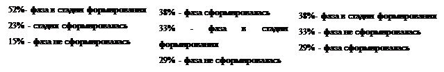 Самой многочисленной является группа учителей, у которых синдром сформировался хотя бы в одной фазе. Далее мы представим таблицу, в которой будет видна выраженность фаз и симптомов в группах учителей. Таблица № 2