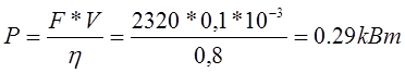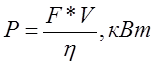 де F – сила, яку повинен подолати двигун, Н. V – швидкість обертання, об/хв. η – ККД приводу kт=1,6 F=mрух частин х 9,8 х kт =147*9,8*1,6=2320 Н