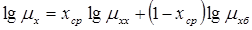 где а – удельная поверхность насадки, м2 /м3 ; e – свободный объем насадки, м3 /м3 (в ректификационных колоннах работающих при атмосферном давлении для разделения агрессивных жидкостей, а также в тех случаях, когда не требуется частая чистка аппарата, обычно применяют керамические кольца Рашига. Для данного случая примем насадку из керамических колец Рашига размером 50´50´50 мм. Удельная поверхность насадки 87,5 м2 /м3 , свободный объем насадки 0,785 м3 /м3 , насыпная плотность 530 кг/м3 ). Вязкость жидких смесей: