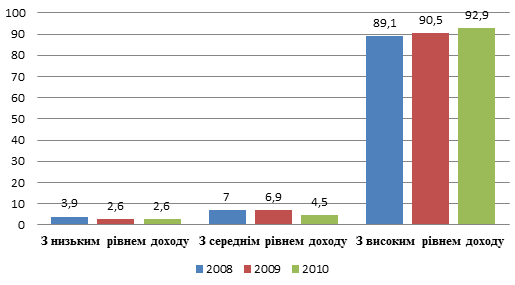 *- за даними [31] Таким чином ми бачимо, що компанії США є самостійними, що дозволяє їм увійти в трійку світових компаній-лідерів з виробництва лікарських засобів. Досить важливим є той факт,що загальний обсяг глобального фармацевтичного виробництва в 2009 році був понад 320 млрд. дол., що становить 1,12% від глобального валового внутрішнього продукту (ВВП). Середньорічний темп зростання виробництва фармацевтичної продукції за період 2008-2010 років становив лише 10,5% у поточних цінах, в порівнянні з середньорічні темпи зростання світового валового національного продукту (ВНП) - 7,5%. Середній реальний темп зростання ВВП на той період складав лише 3,6% річних, а середні реальні темпи зростання виробництва фармацевтичної продукції - 14,9% річних.[17,c. 7-8] Для того, щоб біль точно проаналізувати систему дохідності фармацевтичної індустрії необхідно перш за все дати певний аналіз країн с низьким, середнім та високим рівнем розвитку рис 1.2.