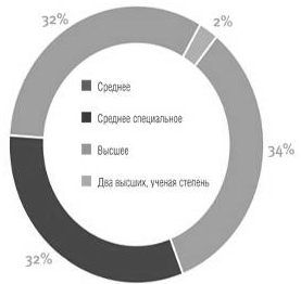 Состав работающих в ООО "Русь" по уровню образования в 2011 году На предприятии существуют хорошие условия работы персонала, которые постоянно совершенствуются. Параметры микроклимата, уровни освещенности, ионизирующих и неионизирующих излучений, чистоты воздуха рабочей зоны и шума соответствуют нормативам. Персонал обеспечиваться средствами индивидуальной защиты в необходимом количестве и соответствующих размеров (перчатками, масками, щитками, респираторами, фартуками и пр.) в зависимости от профиля отделения и характера проводимой работы.