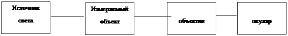 Рис. 1. Структурная схема микроскопа. Лучи света от лампы накаливания освещают измеряемый объект , помещенный на предметном столе. Изображение объекта измерения проектируется объективом в фокальную плоскость окуляра, где помещается штриховая сетка с прерванным перекрестием. Изображение объекта измерения рассматривается через окуляр. При перемещении изображения объекта измерения перемещается электронная система преобразования. Измеренные величины выводятся на индикаторное табло в качестве цифровых показаний. Описание принципа действия микроскопа. Принцип действия микроскопа состоит в увеличении измеряемого объекта и передаче измеряемого размера объекта перемещению наконечника электронного микрометра, с помощью которого объект вместе с предметным столом микроскопа перемещают от одного края контура до другого (по измеряемому размеру). Перемещение стола контролируется наблюдателем через окуляр визирного микроскопа, имеющего штриховую сетку с прерванным перекрестием, с которым последовательно совмещают края измеряемого контура изделия. Микроскоп состоит из основания, на котором смонтирован предметный стол с электронными микрометрами, колонки для перемещения визирного микроскопа и самого визирного микроскопа. Визирный микроскоп состоит из объектива, тубуса, штриховой сетки с прерванным перекрестием и окуляра. Тубус микроскопа перемещается по колонке вверх и вниз и таким образом позволяет фокусировать изображение поверхности измеряемого изделия в глаз наблюдателя. Предметный стол освещается специальной лампой и может перемещаться с помощью микровинтов электронных микрометров в продольной и поперечном направлениях. Электрическая часть микроскопа включает в себя преобразователь фотоэлектрический, преобразующий перемещение микровинта электронного микрометра в цифровое показание и устройство цифровое отсчетное. Индикация показаний производится на жидкокристаллическом индикаторе. Таблица 1. Основные технические характеристики