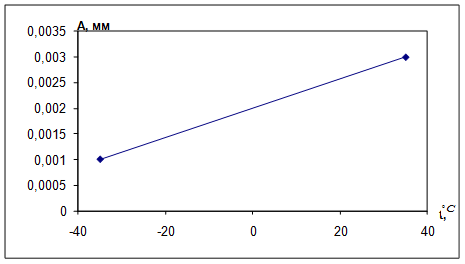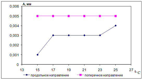 Рис.8 Зависимость абсолютного отклонения показаний микроскопа от температуры при продольном и поперечном перемещении стола