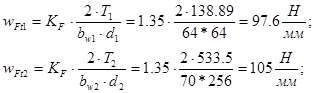 Недогрузка равна 21%. Проверка передачи на изгибную выносливость: