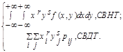 Упорядочная совокупность n случайных величин (СВ) Х1, Х2, ..., Хn, рассматриваемых совместно в данном опыте, называется n-мерной СВ или случайным вектором и обозначается Функцией распределения (ФР) n-мерного случайного вектора называется функция n действительных переменных х1, x2, ..., xn, определяемая как вероятность совместного выполнения n неравенств: F(x1, x2, ... xn) = P{ X1 <x1, X2 <x2,..., Xn<xn}. В частности, для двумерного случайного вектора (X, Y) по определению ФР имеем: F(x, y) = P{X<x, Y<y}. ФР F (х, у) обладает следующими свойствами: 1. 0 £ F(x, у) £ 1; 2. F(x, у) - неубывающая функция своих аргументов; 3. 4. Свойство 4 обычно называют условием согласованности. Оно означает, что ФР отдельных компонент случайного вектора могут быть найдены предельным переходом из функции совместного распределения этих компонент. Вероятность попадания случайной точки на плоскости (X, Y) в прямоугольник со сторонами, параллельными осям координат, может быть вычислена с помощью ФР по формуле: P{x1 £X<x2, y1 £Y<y2} = F(x1, y1)+ F(x2, y2)- F(x1, y2)- F(x2, y1). Двумерный случайный вектор (X,Y) называется случайным вектором дискретного типа (СВДТ), если множество его возможных значений G(x, y) не более чем счетно. Ее закон распределения можно задать двумерной таблицей из перечня возможных значений пар компонент {(хi, yi) | (хi, yi) ÎG(x, y)} и соответствующих каждой такой паре вероятностей pij = P{X = xi, Y = yj}, удовлетворяющих условию Двумерный случайный вектор (X, Y) называется случайным вектором непрерывного типа (СВНТ), если существует такая неотрицательная функция f(x, y) называемая плотностью распределения (ПР) вероятностей случайного вектора, что: f(x, y) = ПР вероятностей обладает следующими свойствами: f(x, y) ³ 0, (x, y) ÎR2;