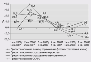 Рисунок 2. Динамика страховых взносов на российском страховом рынке (по видам страхования)
