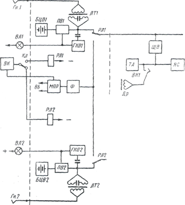 На рис. – 3,2 показана блок-схема постанционной связи с селекторным вызовом. Рассмотрим кратко работу схемы. Абонент промежуточного пункта, например линии 1, для вызова распорядительной станции должен нажать вызывную кнопку, имеющуюся на телефонном аппарате ТА типа ТПС-52. При этом замкнется цепь питания реле приемника ПВ1 распорядительной станции от батареи БЦВ1. При срабатывании реле ПВ1 включит лампу ВЛ1 на коммутаторе и подключит питание к генератору контроля вызова ГК.В1, который подает в линию ток тональной частоты, воздействующий на телефон вызывающего абонента. Телефонистка должна опросить линейного абонента и по его просьбе или соединить с абонентом узла или же послать избирательный вызов на требуемый промежуточный пункт. Вызываемый абонент должен снять микротелефон и ответить. Телефонистка вынимает штепсель из гнезда коммутатора. В качестве распорядительной станции применяется аппаратура типов ПС-1,ПС-1М, ПС-2М, ПС-257, ПС-457, ПС-59. В комплекте аппаратуры станции типа ПС-59 входят распорядительное устройство РТПС-59, кнопочное вызывное устройство. РУ-ПС-59 имеет приборы посылки в линии селекторного вызова, приборы приема вызова с линии и др. На промежуточных пунктах установлены вводные щитки, селекторные ящики и телефонные аппараты типа ТПС-52, имеющие вызывные кнопки. Блок-схема постанционной связи с тональным вызовом представлена на рис.3.3. В- состав распорядительной станции типа ПСТ-2-60 входит стойка ПСТ-2-60 и вызывной кнопочный пульт телефонистки типа ПК-61. Один комплект рассчитан на включение двух цепей постанционной связи. Аппаратура промежуточного пункта типа ППТ-66 отличается от аналогичной аппаратуры диспетчерской связи наличием, блока генератора и вызывной кнопки в телефонном аппарате типа ТА-П-66. На распорядительной станции имеются приборы, датчик тонального избирательного вызова ДТИВ, генератор контроля вызова, два приемника тонального вызова ПТВ1 и ПТВ2 и два линейных трансформатора ЛТ1 и ЛТ2. Для посылки вызова рядом с коммутатором устанавливается кнопочный пульт К. Линейный абонент вызывает телефонную станцию нажатием вызывной кнопки ВК, в линию будет послан тональный сигнал частотой 1600 гц через усилитель передачи. Этот сигнал будет принят приемником ПТВ1, который через релейную схему (на рисунке не показана) зажжет вызывную лампу ВЛ1 коммутатора. На промежуточном пункте будет слышен сигнал контроля вызова. Посылка в линию тонального избирательного вызова осуществляется посредством ДТИВ при нажатии одной из кнопок пульта К. Датчик ДТИВ подключается к линии 1 или 2 автоматически при вставлении штепселя шнуровой пары в гнезда ГН1 или ГН2 коммутатора. При посылке вызова вызывные сигналы поступают в линию 1 или 2 через замкнутые контакты 1-3 реле ИВ1 (ИВ2). В телефон телефонистки через резисторы R1 (R2) ответвляется часть вызывного тока для контроля. Линейно-путевая связь (ЛПС) организуется в пределах дистанций пути по принципу постанционной связи. Распорядительную установку монтируют на станциях, где находится контора дистанции пути, и включают ее в коммутатор местной или междугородной связи. В цепь линейно-путевой связи может быть включено не более 20 промежуточных пунктов. Аппараты ЛПС устанавливаются у начальника дистанции пути, дорожных и мостовых мастеров, бригадиров пути, в путевых казармах, у путевых об