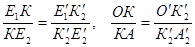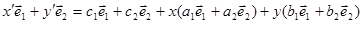 рис. 6 Первое из этих равенств показывает, что точки К'1 и К'2 совпадают, а тогда из второго следует А'1=А'2, что противоречит А. Полученное противоречие доказывает теорему. Основную теорему можно сформулировать иначе: каковы бы ни были два треугольника, существует единственное аффинное преобразование, переводящее один в другой. Доказанная основная теорема делает понятие аффинного преобразования конструктивным. Аффинное преобразование задается парой произвольных аффинных реперов. 4)Уравнения аффинного преобразования получаются из основной теоремы и формул преобразования аффинных координат точно так же, как и уравнения движения и подобия. Пусть даны два репера рис. 7