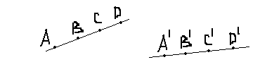 Последнее показывает, что отношение двух параллельных отрезков есть инвариант перспективно-аффинного соответствия. Если отрезки АВ и СDлежат на одной прямой (черт. 6), то их отношение также инвариантно в перспективно-аффинном соответствии. В самом деле, пусть РQ-произвольный отрезок, параллельный прямой АВ. Тогда имеем: