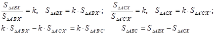Так как, кроме того, для площадей соответственных треугольников имеем: