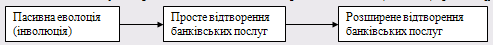 Рис. 3.3. Еволюція моделей ліквідності Проте перехід від моделей пасивної еволюції до моделей відтворення банківських послуг відчутно ускладнюється появою нових вимог і зобов’язань, які здебільшого мають випадковий характер. Через це детерміновані моделі, як правило, перетворюються на стохастичні. Серед динамічних моделей банку розрізняють моделі двох типів: моделі динаміки балансових залишків та моделі динаміки грошових потоків (оборотів). Переваги моделей першого типу полягають у тому, що вони оперують безпосередньо залишками, які відображаються безпосередньо у балансі банку. Вони моделюють динаміку балансу банку. Однак поза увагою цих моделей часто залишається часова структура активів та зобов’язань. Між тим, саме часова структура активів та зобов’язань визначає ліквідність банку. Навпаки, потокові моделі зосереджуються саме на строковості активів та зобов’язань, тому часова структура в цих моделях є параметрами управління. Такі моделі призначені для опису динаміки оборотів погашення (вибуття) і виникнення (надходження) грошових коштів. Вони моделюють рух коштів. Більш детально зупинимося саме на першому типі моделей-динаміки балансових залишків, до яких можна віднести і модель динамічного індикатора, що базується на методі непараметричної статистики. Використання даної моделі для оцінювання ризику ліквідності дає змогу отримати узагальнюючу оцінку ризику ліквідності, виходячи з розгляду банку як складної динамічної системи. В основу цієї моделі покладено поняття динамічного індикатора як сукупності показників, упорядкованих за темпами зростання. Ранжований ряд показників дає можливість проаналізувати динаміку показників у їх взаємному співвідношенні і взаємовпливі, тобто дозволяє оцінити фінансовий стан банку та рівень його ліквідності, який не може бути точно оцінений будь-яким окремим показником. Для оцінки ризику ліквідності комерційного банку на основі моделі динамічного індикатора буде використовуватись вектор оцінок, розрахований за нелінійним динамічним показником на основі нормативної і фактичної матриць співвідношень. Розрахунок динамічного індикатора для даної моделі розраховується матричним методом і включає наступні етапи: а) Визначення оптимального переліку показників, що характеризують ліквідність і платоспроможність комерційного банку, на основі яких формується динамічний індикатор ліквідності. Цей етап є надзвичайно важливим, оскільки від того, наскільки чутливими будуть вибрані окремі показники, залежить точність оцінки ризику ліквідності. Формування переліку показників має ураховувати рівень ліквідності активів, стабільності пасивів, надійність банку. Також необхідно відмітити, що мала кількість показників не дає змоги отримати точну узагальнюючу оцінку і незначні зміни в динаміці окремих показників можуть призвести до суттєвих змін результату. І навпаки, значна кількість показників призводить до втрати чутливості оцінки до зміни в їх динаміці, тобто в процесі побудови динамічного індикатора рекомендовано використовувати 6-10 показників.Для побудови динамічного індикатора ліквідності банку "Фінанси та кредит" використаємо вісім показників, які дають змогу комплексно оцінити рівень ліквідності та платоспроможності: -сукупні активи; -високоліквідні актив