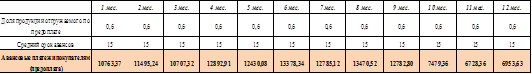 Величина дебиторской задолженности в 1-ом месяце выглядит следующим образом: А 1 мес4= 35877,89 Таблица 7 - Дебиторская задолженность