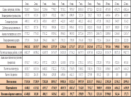 Сумма резерва денежных средств составит: А1 мес 6= Таблица 11 - Резерв денежных средств