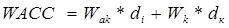 Wak - доля акционера di - требуемая норма доходности Wk - доля средств банка dа - ставка по кредиту Для того, чтобы найти долю проекта определяется по формуле: dа= di +Р, где: d - коэффициент дисконтирования без учета риска проекта, Р'~ поправка на риск проекта. При этом di, рассчитывается по следующей формуле: