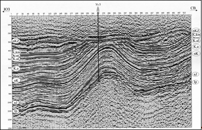 Рис. 3. Комплексирование электроразведки и сейсморазведки на Узеньском месторождении