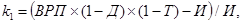 где К – показатель инвестиционной привлекательности региона, в долях единицы; k1 – экономическая составляющая, в долях единицы; k2 – рисковая составляющая, в долях единицы. Экономическая составляющая представляет отношение прибыли от инвестиций к вложенным средствам: