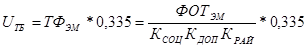 8.5 Затраты на ТБ Затраты на технику безопасности в основном составляют затраты на спецодежду, обувь, средства защиты и сопутствующие материалы, предназначенные для безопасности обслуживающего персонала и препятствующие поражению электрическим током. Затраты на технику безопасности составляют 33,5 % от тарифного фонда оплаты труда электромонтеров и определяются по формуле: