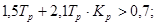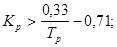Представим: a0 = 0,5Tp; a1 = 1,5Tp; a2 = Tp (1+1,4Kp); a3 = 1,4; Используем критерии устойчивости Гурвица. Необходимо и достаточно, чтобы выполнялись следующие условия: 1) 2) при равенстве а1а2=а0а3 система находится на границе устойчивости. Система будет устойчива, если: Тр>0;