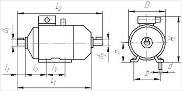 Рис.1.2 Электродвигатель Габаритные размеры электродвигателя: L1 = 320мм; L2 = 375мм; Н = 218мм; в = 186мм; d1 = d2 = 22мм; l1 = 50мм; l2 = 50мм; l3 = 100мм; b = 125мм; в = 10мм; h=120 мм. Передаточное отношение привода определяем по формуле: