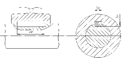Рис. 9.4 Схема нагружения опор тихоходного вала Опора 1 2 Подшипник 213 213 Радиальная реакция, Н 6946 6324 Максимальная осевая реакция, Н 0 0 Статическая грузоподъемность, Н 34000 34000 Эквивалентная статическая нагрузка, Н 13892 12648 Ресурс при вероятности безотказной работы 0.9, ч 100000 100000 Вероятность безотказной работы при заданном ресурсе 0.999 0.999 Расчеты показывают, что все подшипники удовлетворяют условию долговечности, т.е. расчетный ресурс работы превышает требуемый. 10 РАСЧЕТ СОЕДИНЕНИЙ ВАЛ-СТУПИЦАЦелью расчета являются конструктивные размеры шпоночного соединения. Величина расчетных напряжений смятия на рабочих поверхностях шпонок при передаче вращающего момента не должна превышать допускаемых значений, иначе произойдет смятие рабочих поверхностей шпонок. Также касательное напряжение среза не должно превышать допускаемых значений.