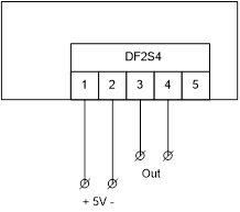 Рис. 4 Схема підключення датчика рівня. Контакти клемника датчика 5 - навчання 4 – головний вихід 2 – додатковий вихід 3 – корпус(мінус) 1 – живлення Схемою управління будуть лише використовуватися контакти №3,4 та контакти подачі живлення. Основні параметри датчика (Див додаток, табл. № Для контролю ваги масси в ємності буде використано тензометричний датчик ваги з аналоговим виходом типу DF2S4. Схема підключення: