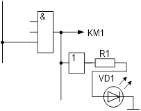 Рис.7. Схема підключення індикації: 1,3,3 Контроль аварійних режимів Для забезпечення безпечного технологічного процесу і нормальної експлуатації станка, потрібно встановити ряд сигналізуючих пристроїв, що забезпечать візуальний контроль обладнанняі. Крім того, правила безпеки праці являються основними вимогами з охорони праці для всіх. Автоматика безпеки передбачає собою індикацію захисту обладнення. Контроль обриву фаз здійснюється за допомогою реле обриву фаєз