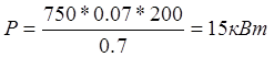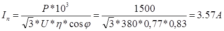 обираємо двигун на 1,5 кВт типу 4A80В4 Iн=3,57А, N=1415об/хв., ККД=77%, Cos=0.83 (див. додатки табл 1) 2.7.3 Розраховуємо двигун під гідронасос води Двигун гідронасосу розраховується за формулою (1, ст 471).